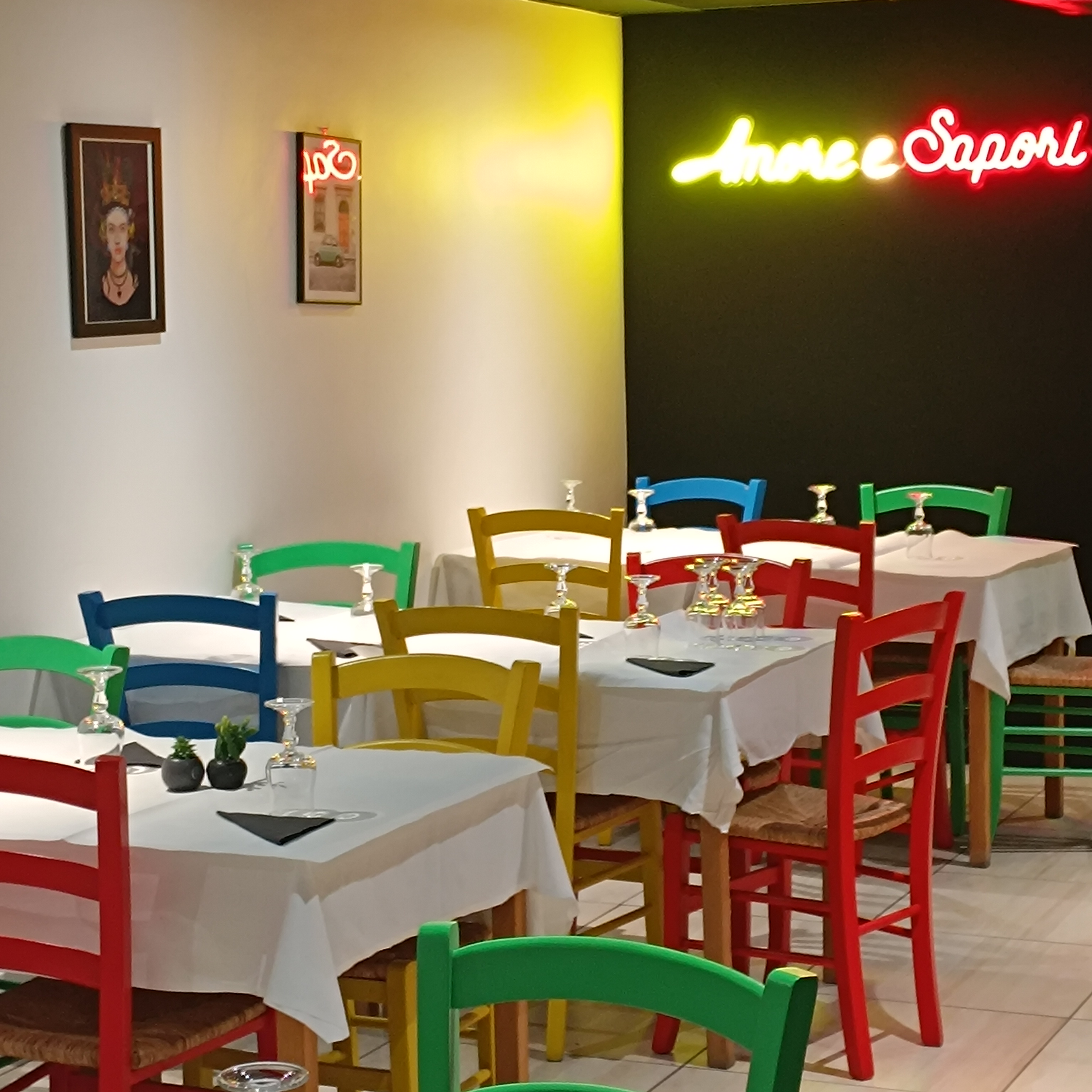 D'abord le moins bien, puis le meilleur: Ambiance : Rien d'exceptionnel, vraiment, déco un peu Arlequin en terme de couleur mais c'est tout. Après je viens pour manger perso donc ce n'est pas très important Service : Au top, rapides et agréables, authentiques, très bien ! Cuisine: Je n'ai mangé que des entrées de charcu et des pizzas mais les 2 sont excellents, et ça , sur mes 2 visites. Mention spéciale pour les entrées qui sont consistantes, peu arriverons à vaincre le classique, entrée/plat/dessert sans tricher à l'aide d'un doggy bag ! Bref, excellent, Amore e Sapori est en favori