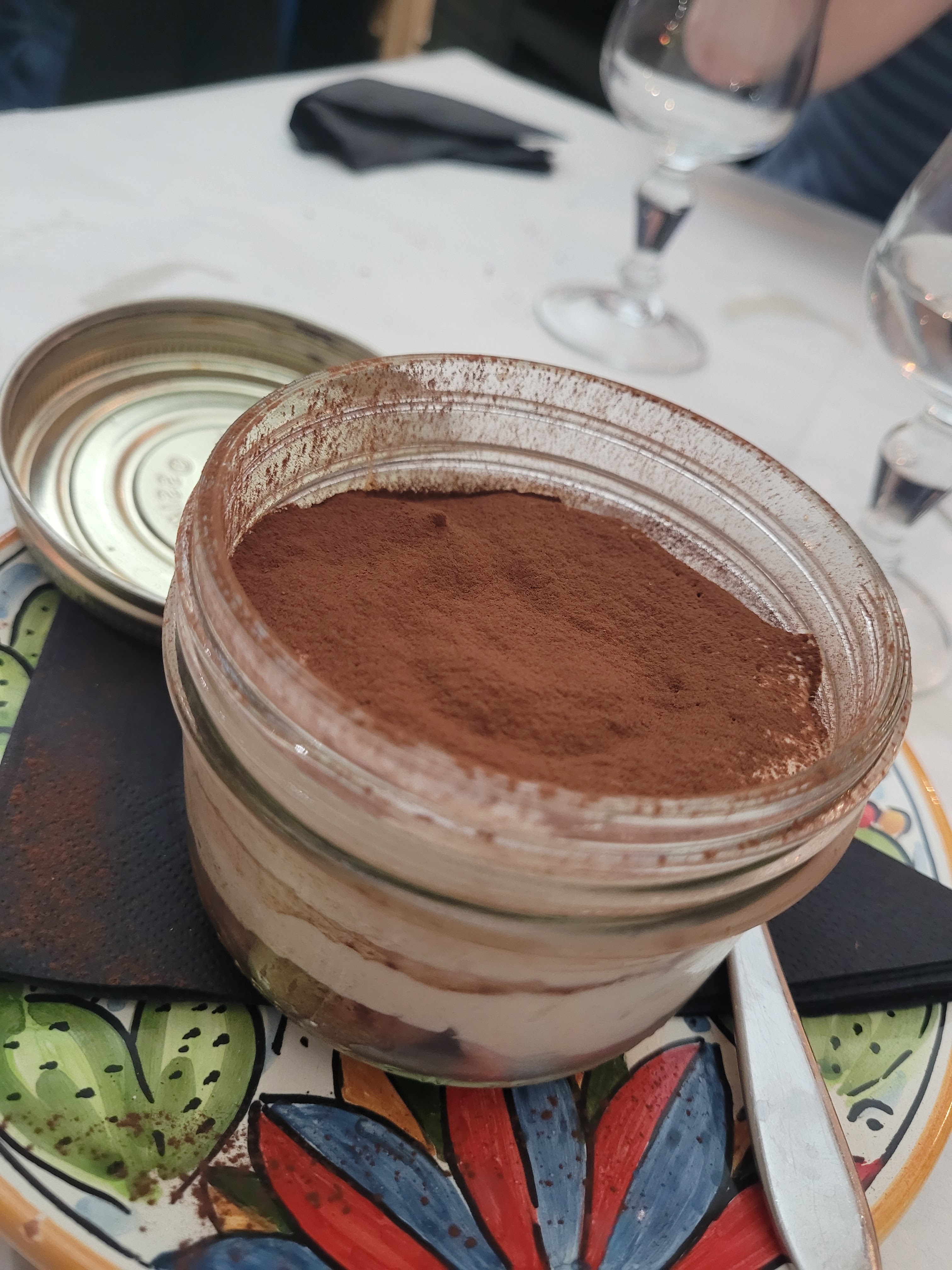 Alors comment vous dire ... j'ai commandé une salade à 18 euros : je fais exactement la même chose à la maison voire meilleure !!!! Quand au tiramisu : que de la crème ... Le café et les biscuits, il fallait vraiment les chercher ! Introuvables !!!! Bref le 4.9 franchement à revoir !!!! Il y a vraiment meilleur en restaurant italien !!!! Mon conjoint a prit un cannolo sicilien : quelconque... trop dur Bref adresse à fuir ..... il y a beaucoup mieux....
