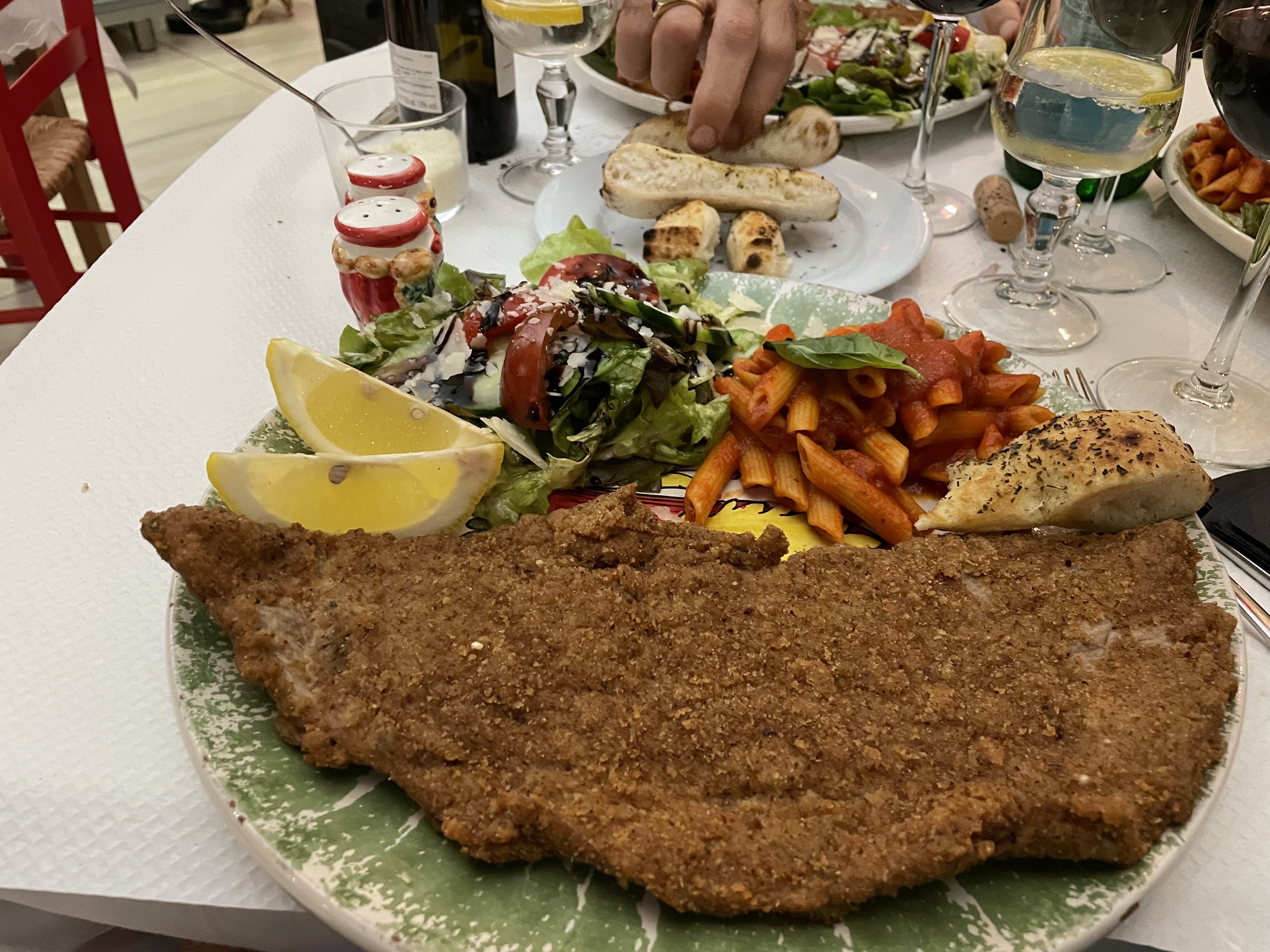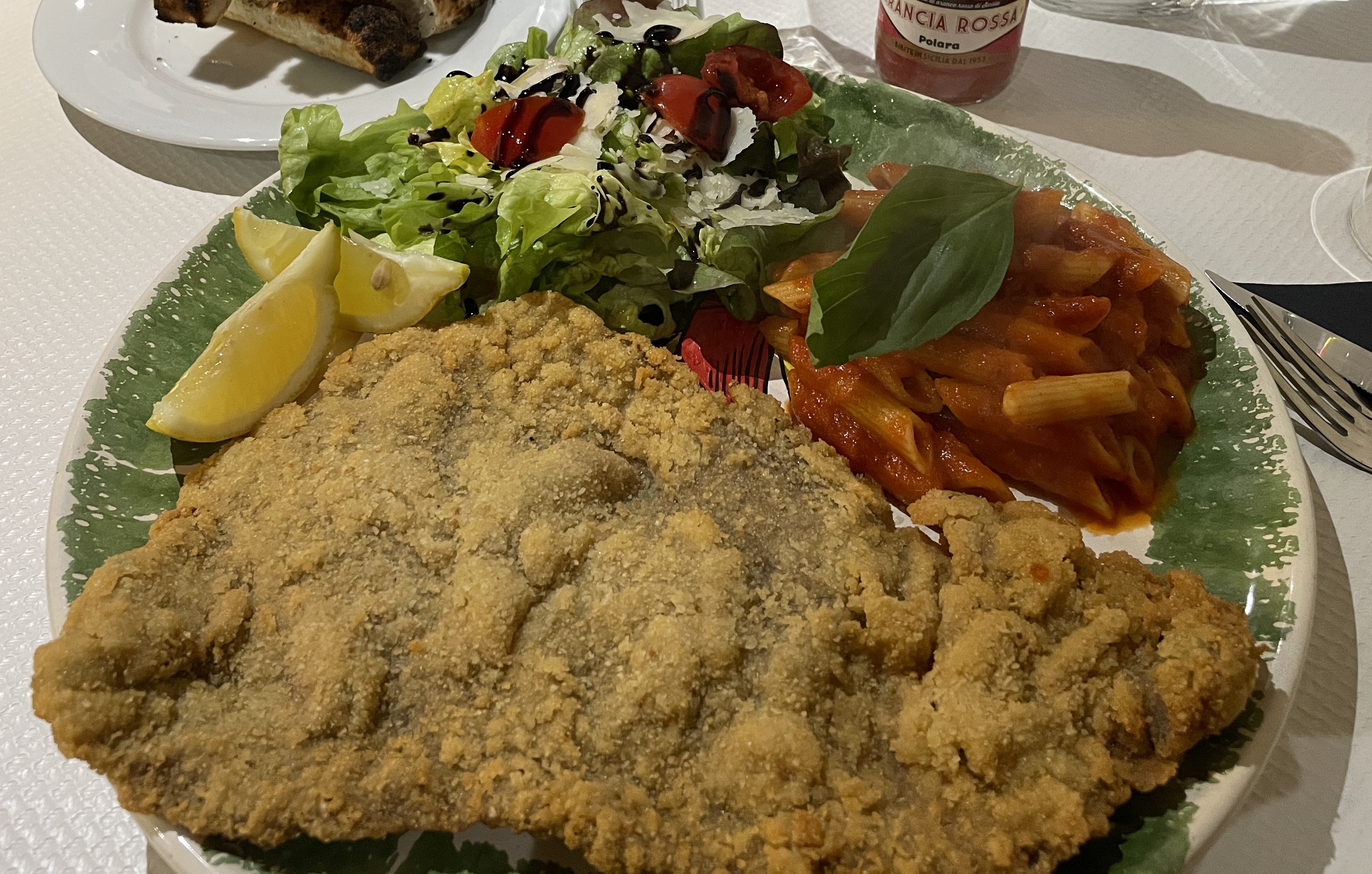 Mamma mia, que c'est bon !! 😋 J'ai pris l'escalope milanaise accompagnée de pâtes à la sauce tomate et d'une petite salade. La serveuse, très agréable, a su me conseiller habilement pour accompagner le tout d'un vin rouge exquis (tellement bon que j'ai oublié le nom !). Simplement délicieux et profondément authentique, j'ai passé un très bon moment et mes papilles s'en rappellent encore. Big up ❤️