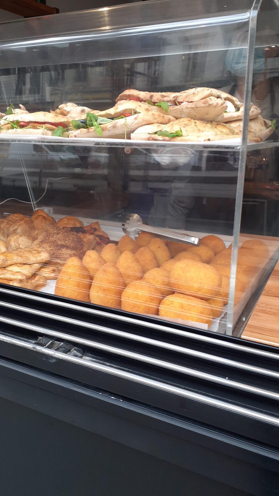 Les plats à emporter sont vraiment excellent, une bonne portion, et servie avec du pain type pate à pizza. Il y a toujours plusieurs choix de plats chaud + des sandwichs qui changent tous les jours. Le prix est un peu élevé mais ça vaut clairement le coup.