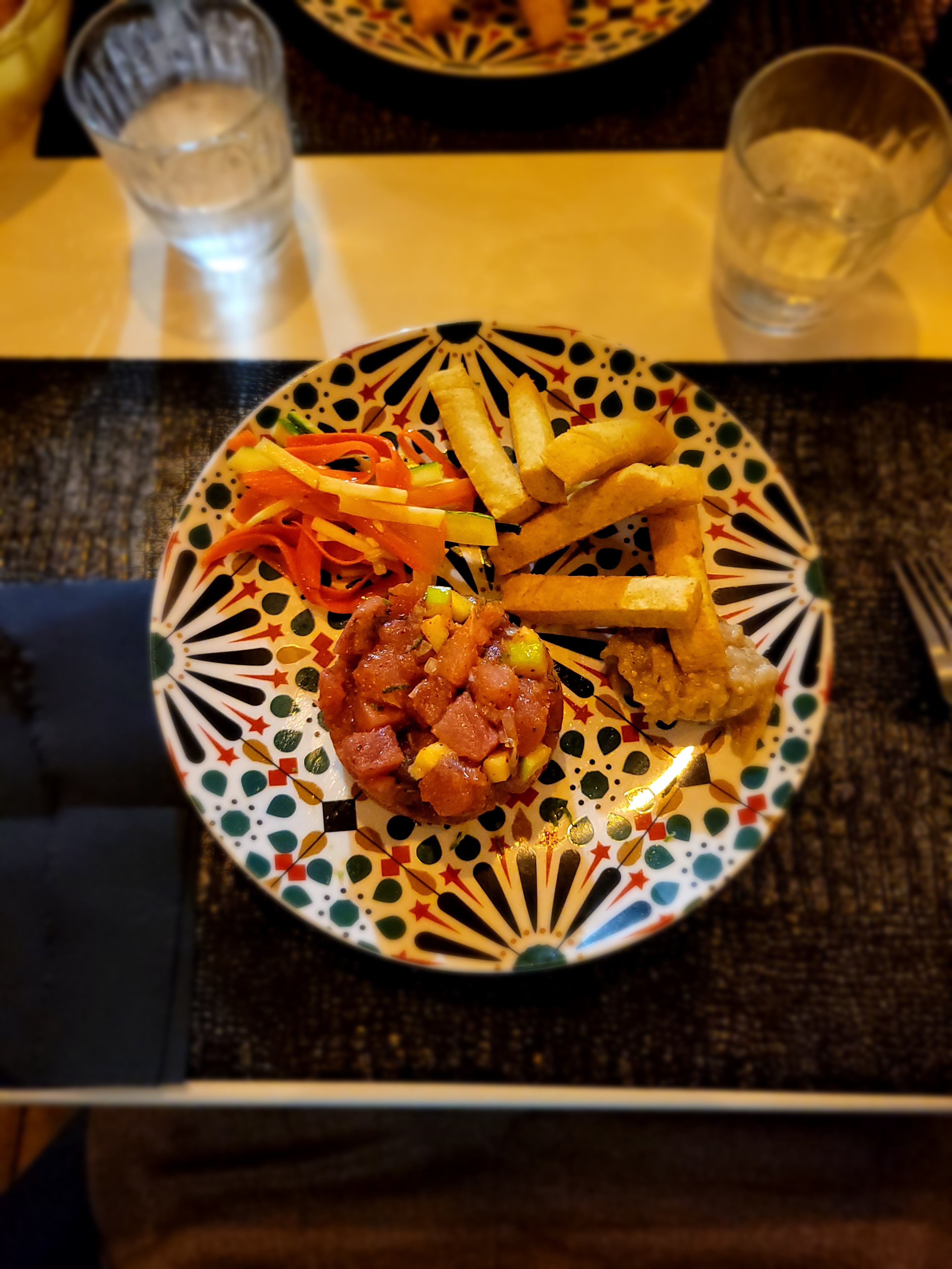 Tout d abord, l'accueil et le lieu étaient sympathique. Nos plats (tartares) étaient bon mais pas excellent. Le vrai problème étant que pour le prix (élevé) la quantité n était pas au rendez vous, un tartare assez petit, peu de frites de panis et peu de salade. Même si l aspect était jolie nous avons été déçu. Dommage