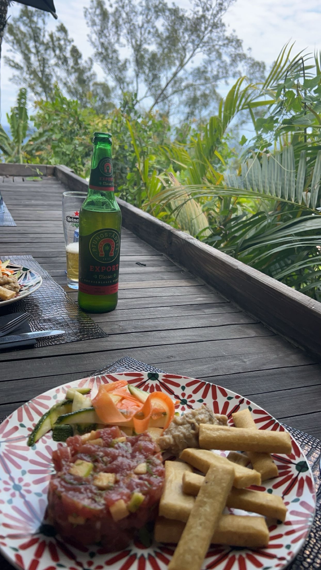 Nous avons pris un tartare de thon, pesé devant le client dans un dé à coudre. Sans goût, nous sommes très déçu. Nous prenons ce plat dans de nombreux restaurants du sud de la Réunion et la, c'était le pire de tous. On a pourtant vue d'autres plats passés plutôt bien servi.