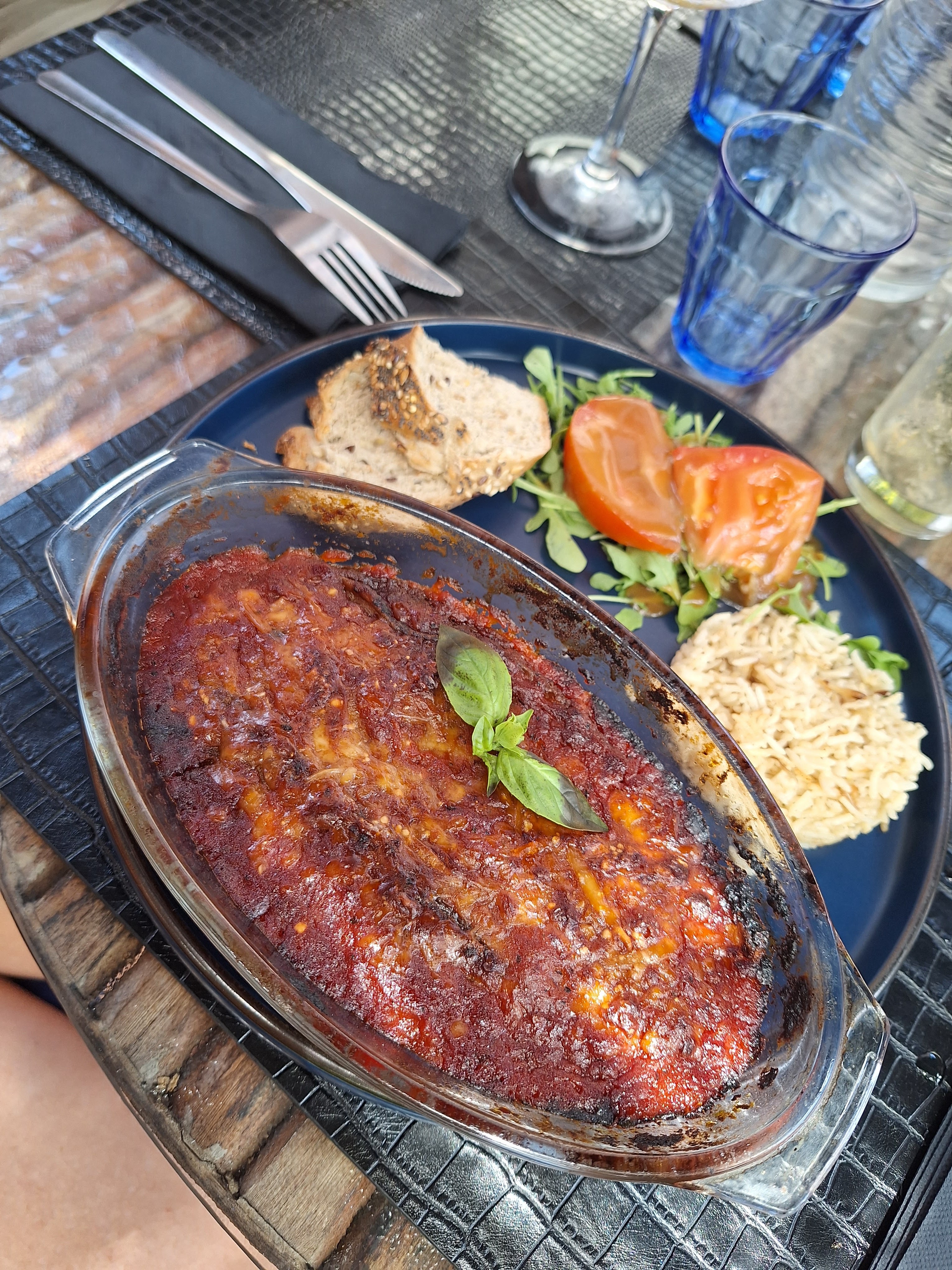 Super, plat copieux (melanzane alla parmigiana), fondant chococat. Service au top, super décor. On reviendra